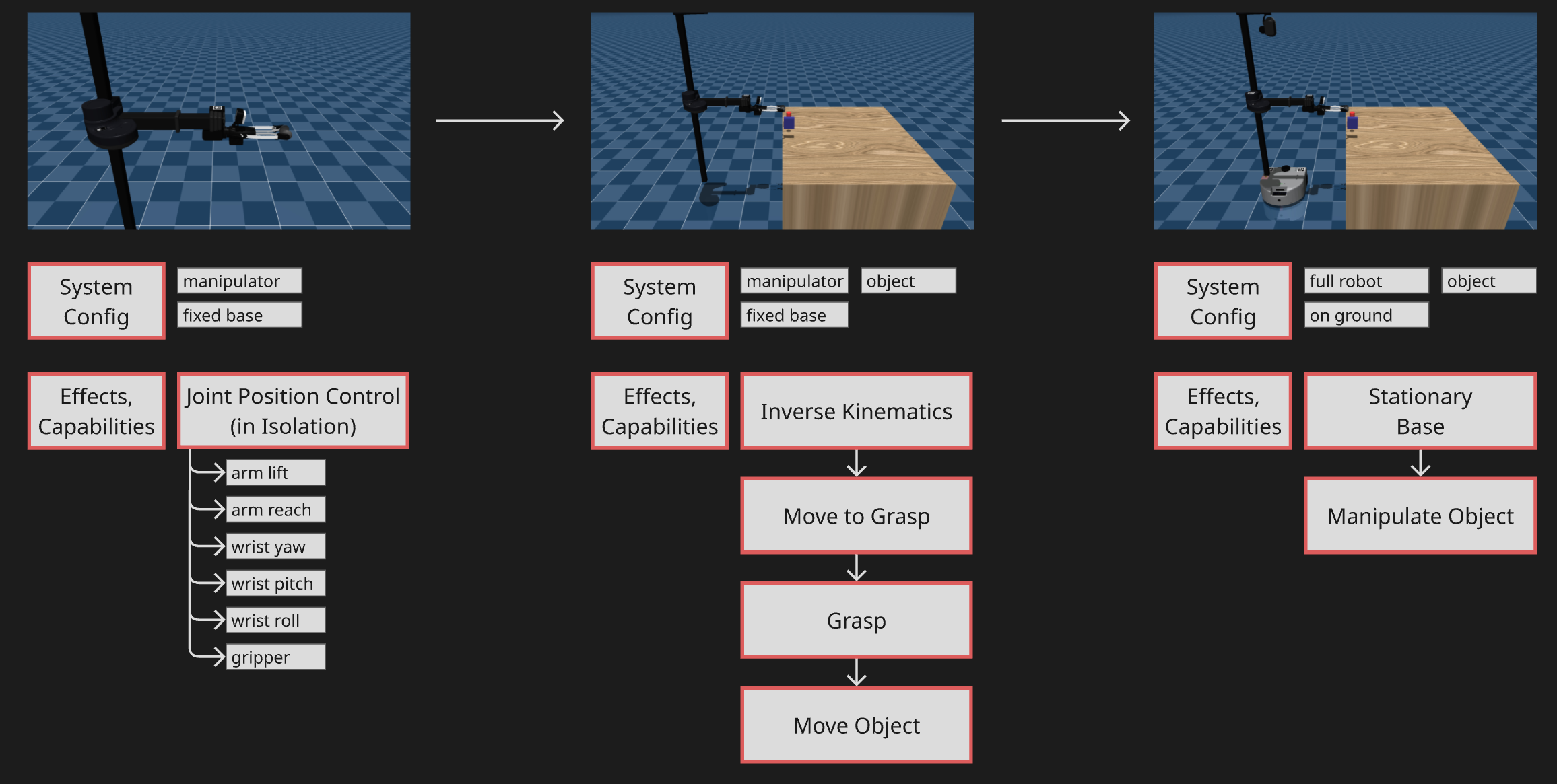 Here’s a demonstration of basic Mobile Manipulation: showing the ability to pick up an object and move it to another side of the table. This capability was built through systematic bring-up of Locomotion and Manipulation subsystems.